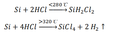 冷氢化:3SiCl4+Si+2H2→4SiHCl3(550℃,20个大气压,SiHCl3含量20%-24%)