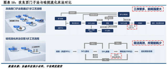 2.2、中游:改良西门子法为主流工艺,硅烷流化床法已实现规模化生产