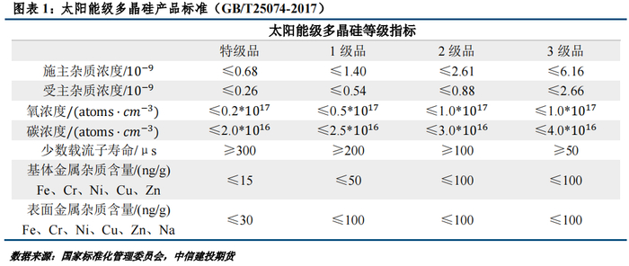 多晶硅是自然界中纯度最高的物质之一,其纯度表征以主体物质的含量多少来表示,即纯度=(总质量-杂质质量)/总质量*100%,通常用“N个9”来表示,例如6N代表99.9999%。根据纯度的不同,多晶硅通常可以分为太阳能级多晶硅和电子级多晶硅两种类型。