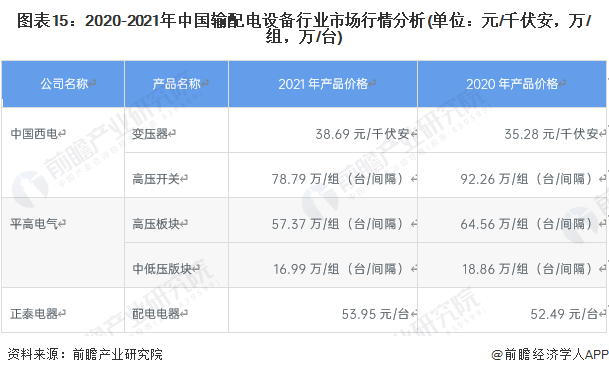 输配电设备品类众多,产品的特性、功能、规格等方面存在较大差异,因此不同输配电设备企业的不同产品价格存在较大的差异。由于我国输配电设备主要通过国家电网及南方电网招投标的方式获取订单,市场化程度较高,因此我国输配电设备头部企业的产品价格具备较强的代表性。
