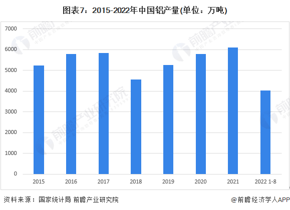 铝及铝合金是当前用途十分广泛的、最经济适用的材料之一。铝的导电性仅次于银、铜和金,虽然它的导电率只有铜的2/3,但密度只有铜的1/3,所以输送同量的电,铝线的质量只有铜线的一半。铝表面的氧化膜不仅有耐腐蚀的能力,而且有一定的绝缘性,所以铝在电器制造工业、电线电缆工业和无线电工业中有广泛的用途。从国内铝产量来看,2015-2021年我国铝产量波动较大。2021年,我国铝产量是6105.2万吨,同比增长了5.6%。