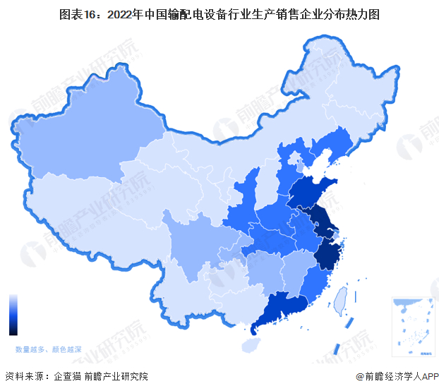 目前,全国已具备较多数量的生产或销售输配电设备的企业,根据企查猫数据统计,截至2022年10月,全国存续/在业输配电设备生产企业超过30000家。从企业分布来看,国内输配电设备企业主要聚集在华东地区,其中江苏、浙江等省市相关输配电设备企业最为集中。