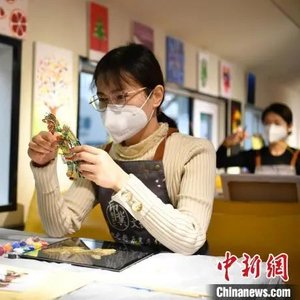图为12月9日,石家庄市裕华区一家文创非遗体验馆,市民体验制作传统手工皮影。 翟羽佳 摄