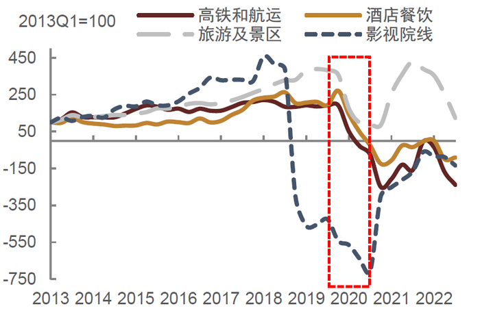 资料来源:Wind,中金公司研究部;注:样本为2013年至2022年三季度有连续数据的工业和非金融地产服务业企业。非金融地产服务业指除了农林牧渔业、采矿业、制造业、建筑业、房地产业和金融业之外的行业。2013年一季度净利润标准化为100。