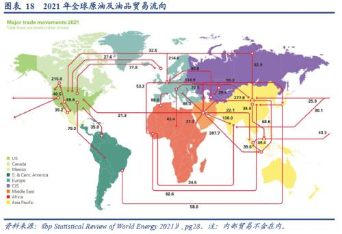 分区域看,主要的原油出口地区是中东、独联体和非洲,主要的需求端在欧洲和亚太地区。