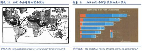 在1950-1970年代,虽然原油生产重心已经完成东移,以沙特和两伊为代表的中东以及独联体取代北美,成为全球原油的生产重心,但大西洋地区(欧美)仍是全球原油的主要消费市场,彼时,全球原油贸易主要集中在大西洋区域。在1970年代初期,虽然中东地区对以日本为代表的东半球出口量快速增长,但西欧仍是其最主要的原油出口地。