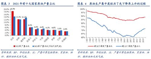 三是影响原油生产的因素较多,既有经济的,也有政治的,供给格局并不稳定,变动相对较为频繁。经济上的有新油田的发现、勘探开发技术的进步等,政治上的有国内局势、地缘政治和战争等。以生产份额看,每十年到十五年,供给格局基本都会出现较大变动。