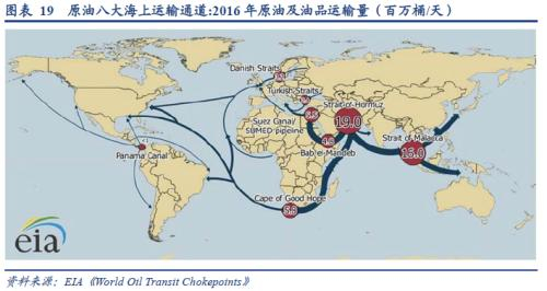 据EIA估计[1],2015年全球原油贸易量的61%通过航海运输。由此,在全球原油贸易流向中,也出现了八大重要航运通道。其中,霍尔木兹海峡和马六甲海峡是最重要的两大通道。