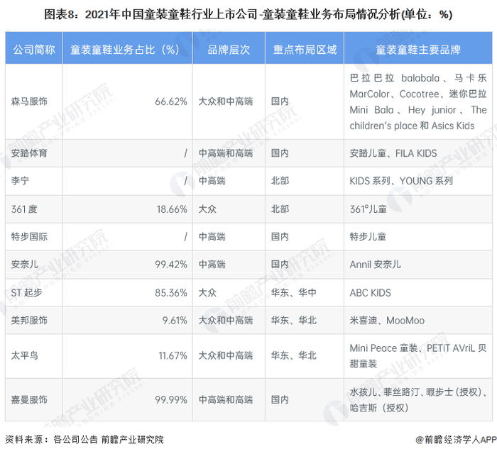 2、童装童鞋行业上市公司业务布局对比