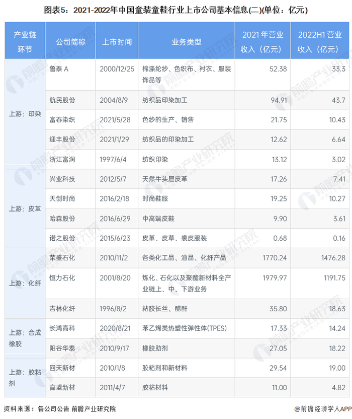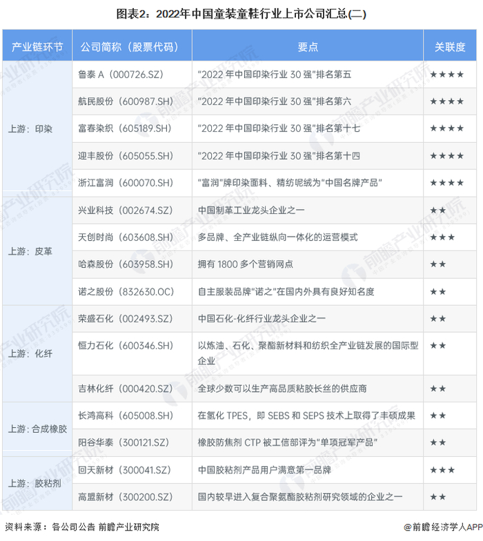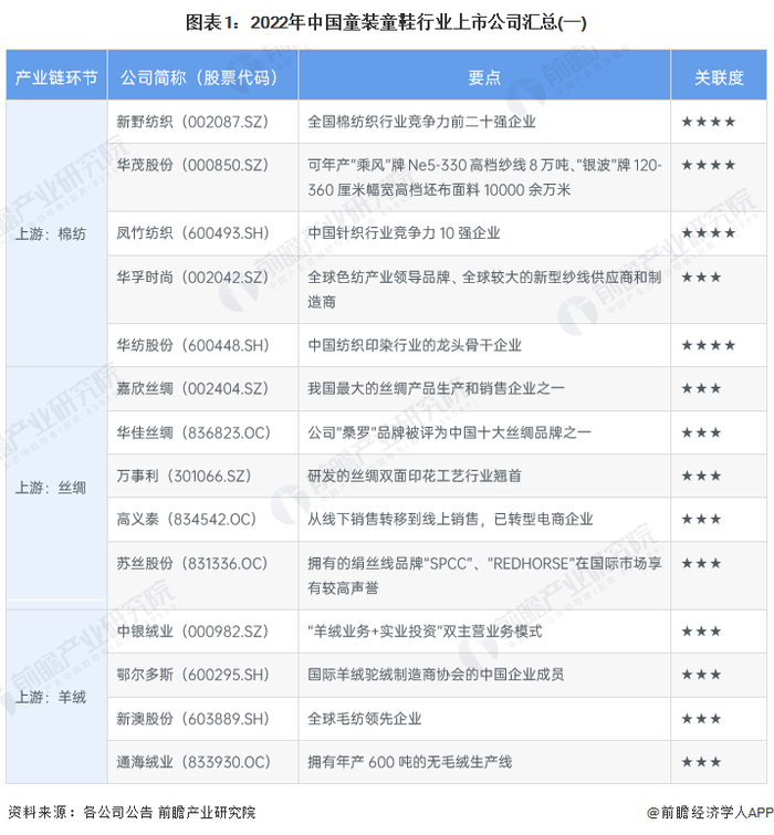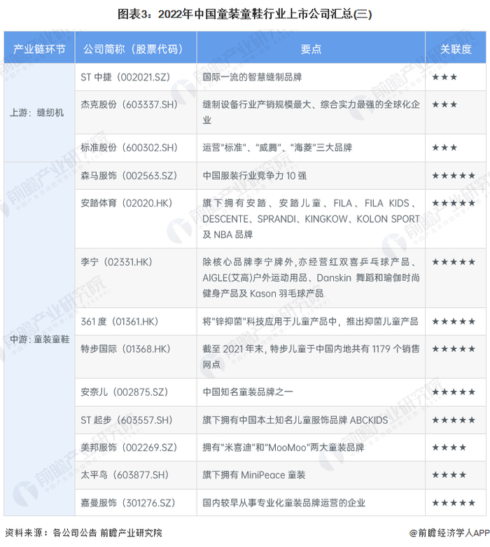 1、童装童鞋行业上市公司汇总