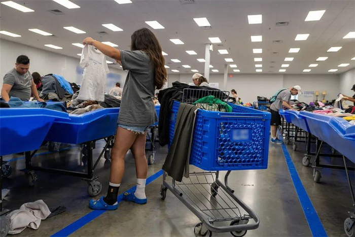 2022年7月27日,美国新泽西州某购物中心,消费者在筛选二手衣服。随着通胀走高,年轻消费者更愿意购买二手商品(视觉中国 供图)