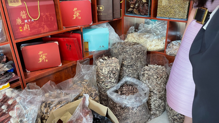 另一家参茸行的店主介绍,市面上常见的是梅花鹿茸、马鹿茸和新西兰鹿茸,其中新西兰鹿茸价格最低。“新西兰鹿茸就可以当梅花鹿茸来卖。”店主自称其鹿茸来自吉林双阳。