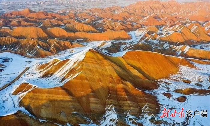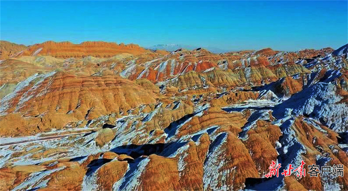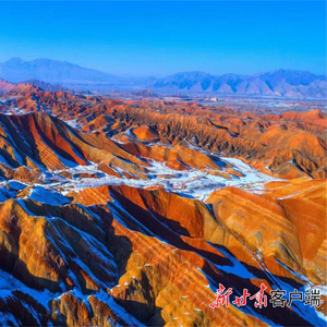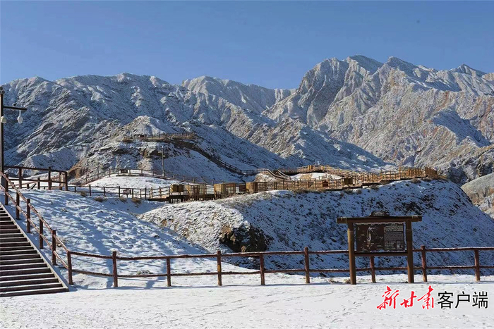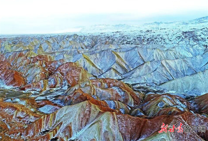 雪“浴”张掖七彩丹霞。