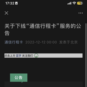 根据“通信行程卡”官方公众号消息,2022年12月13日0时起,正式下线“通信行程卡”服务。“通信行程卡”短信、网页、微信小程序、支付宝小程序、APP等查询渠道将同步下线。