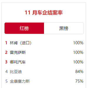 2022年11月份中国乘用车月度实现100%结案率的车企分别为:林肯、雷克萨斯、哪吒汽车。不过3家车企的投诉量比较少,因此100%结案率并不足为奇。