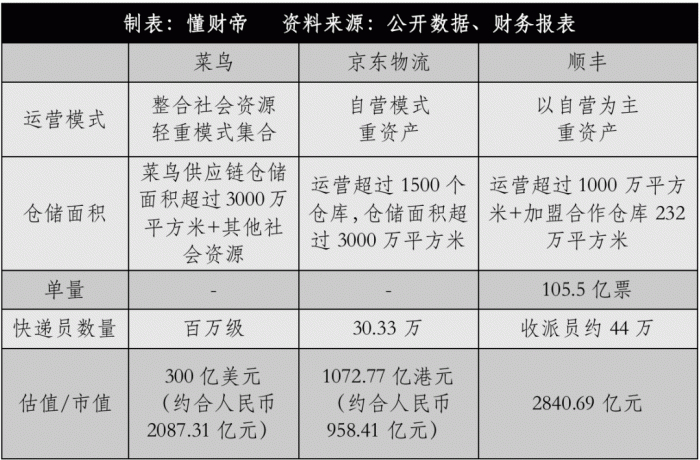 相比之下,京东物流以自营模式为主,仓储面积超过3000万平方米。