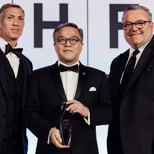 鲁伟鼎代表万向董事局主席鲁冠球接受汽车名人堂的奖杯 图源:万向集团官网