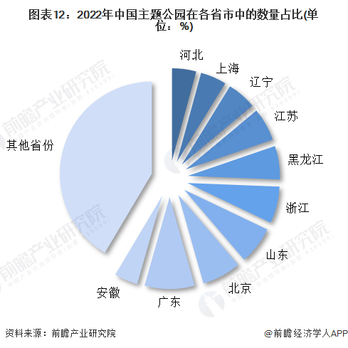 中国社会科学院旅游研究中心和社科文献出版社发布的《旅游绿皮书:2021-2022年中国旅游发展分析与预测》指出,中国已成为全球最重要的主题公园市场。我国主题公园的空间分布极不均匀,东、中、西部呈现出明显的差异,东部11个省、市拥有的主题公园数量占到全国的58.08%,中部地区主题公园数量占全国的23.33%,西部地区只占到全国的18.75%。其中,东部地区当中广东占比最高,几乎主题公园数量超过9%。