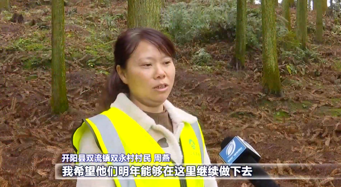 开阳县双流镇双永村村民 周燕:在这里上班能贴补一点家用,家里有老人和孩子,在这里离家近,我希望他们明年能够在这里继续做下去,我们也方便就业。