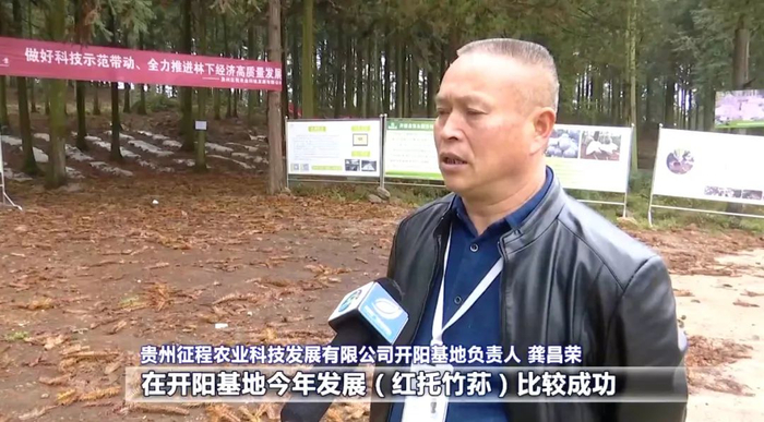 贵州征程农业科技发展有限公司开阳基地负责人 龚昌荣:今年在开阳基地发展红托竹荪比较成功,红托竹荪今年产值达1500斤左右,三个月可以采收,主要是以菌养林,带动老百姓就业。