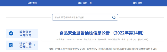 辽宁省辽阳市市场监管局发布2022年第14期食品安全监督抽检信息