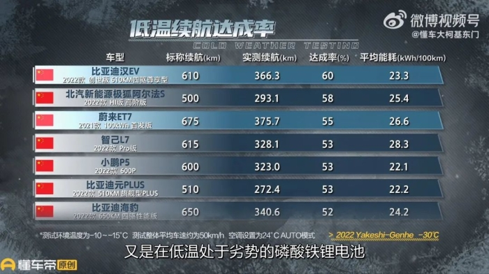 懂车帝2022电动汽车冬测:理想L9未开测就趴窝 蔚来ET5续航达成率低