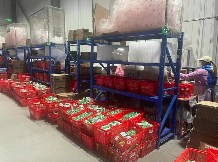 物流配送中心的各个空地和仓库中堆满了各类药品,除了连夜运来的连花清瘟外,记者还在现场看到了感冒清热颗粒、蓝芩口服液、强力枇杷露等“热门药”。