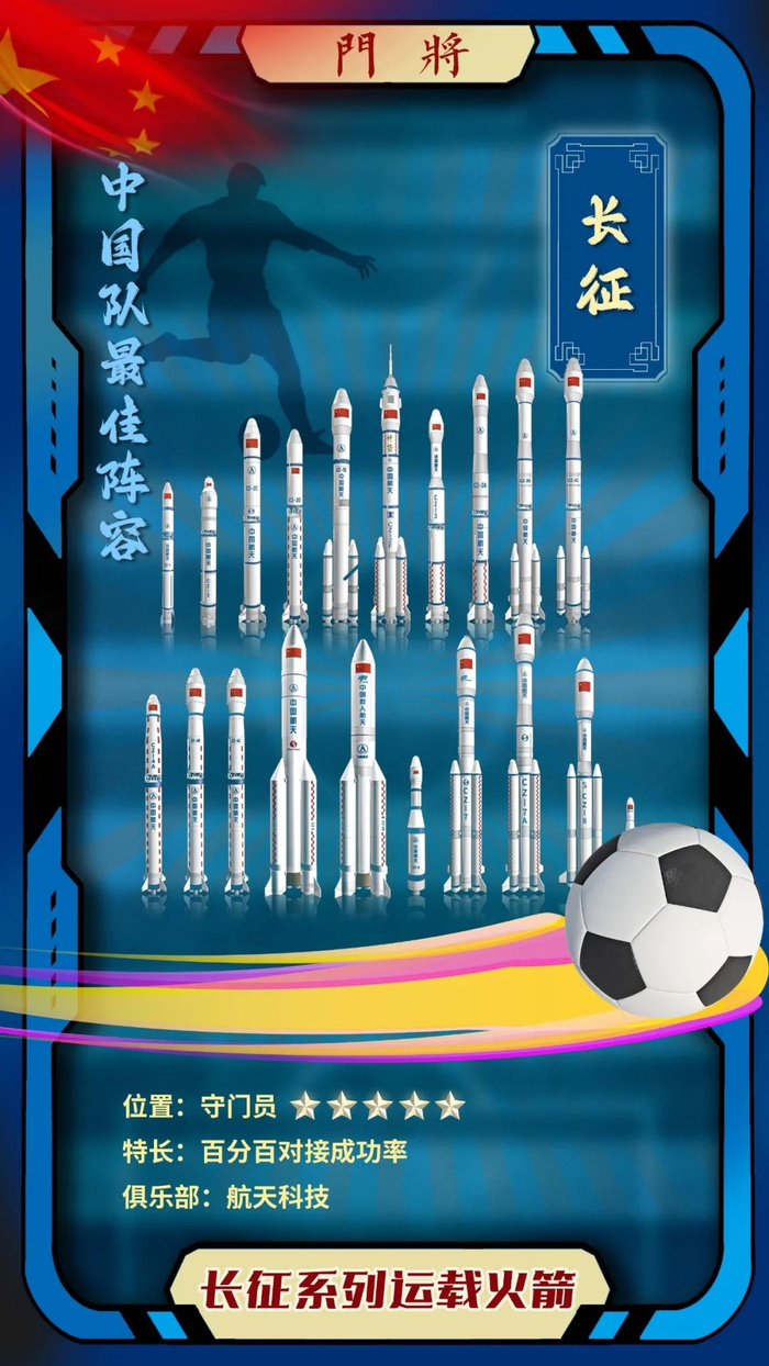 优势分析:长征系列运载火箭有着门将所需的突出优点——先天的身高优势;“滞空”能力,是ta化解高空球的法宝之一。注册成为球员至今,保持着近100%的成功率,始终与前场队友“同频共振”,是一位值得信赖的“门神”。