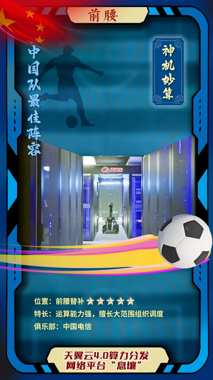 优势分析:“息壤”作为中国电信俱乐部的当家球星,能够在全国范围内实现每分钟数万次、每天上千万次的算力统筹和调度。ta的比赛理解能力即便在这支众星云集的球队里,也属于顶尖水准。作为主教练的“场上助教”,ta的信息传输能力往往能提高球队的能力上限,找到通往进攻端的最佳传球路线。