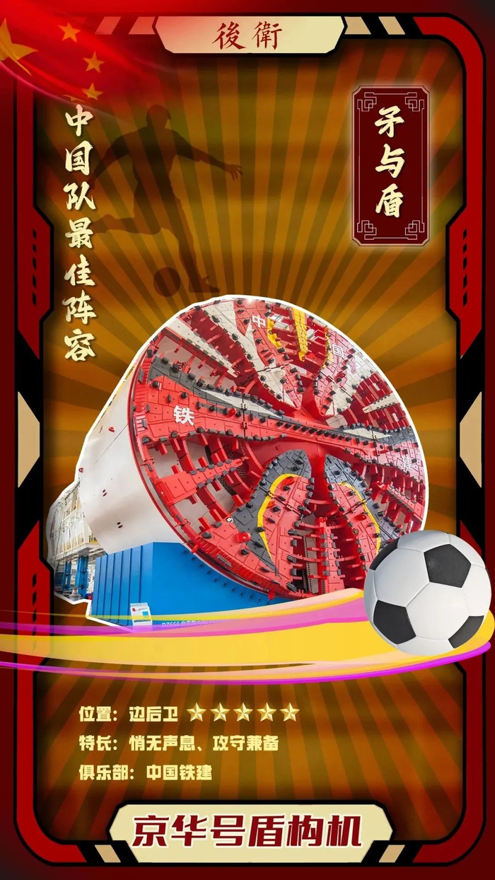 优势分析:京华号盾构机代表中国铁建俱乐部青训水平,是一位名副其实的“带刀侍卫”,护盾具有超强的防护能力,对于对手的边前卫和前锋来说,与之对抗无疑是个噩梦。此外,ta的出击直径16.07米,属于世界之最;刀盘锐利,头球争顶威力十足,能够有效洞穿坚如磐石的防御阵型。