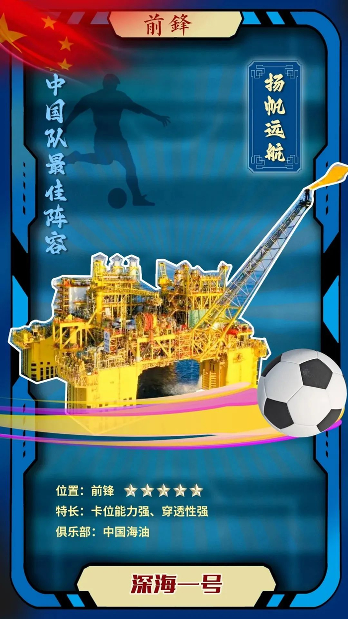 优势分析:深海一号作为我国自主研发建造的全球首座10万吨级深水半潜式生产储油平台,是一名古典型中锋,擅长在球队罚任意球、角球时卡住身位,为球队赢得先机。此外,ta出色的穿透性能撕开深海和地表,更别说对手的防线了,是球队解决问题最可靠的得分手。