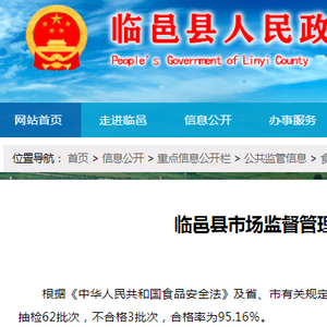 山东省临邑县市场监管局抽检食品62批次 不合格3批次