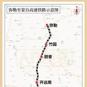 弥蒙高铁位于云南省红河哈尼族彝族自治州境内,线路北起南宁至昆明高铁弥勒站,经红河哈尼族彝族自治州弥勒市、开远市、蒙自市,南抵蒙自市红河站,全长106公里,设计时速250公里,全线共设弥勒、竹园、朋普、开远南、红河5座车站,其中弥勒站为既有车站,其他为新建车站。