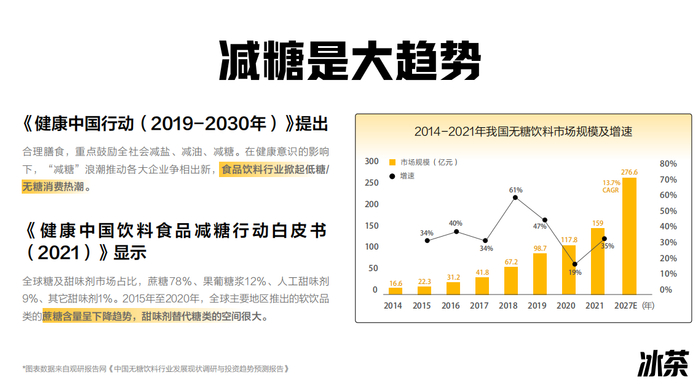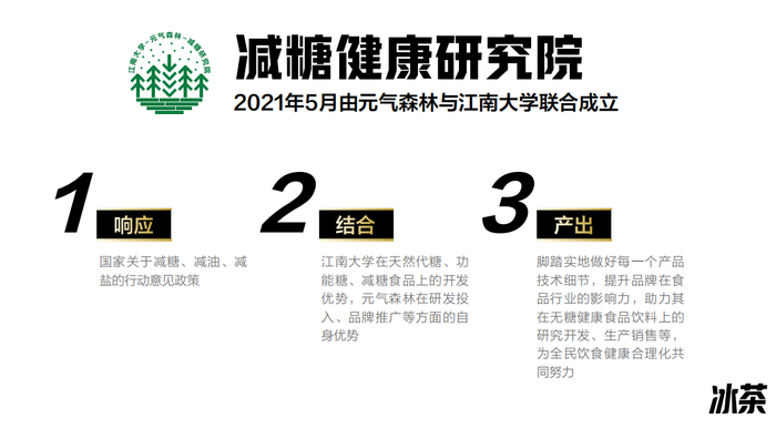 作为国内“0糖0脂0卡”健康概念的倡导者之一,2021年5月,元气森林与江南大学联合成立减糖健康研究院,结合江南大学在天然代糖、功能糖、减糖食品上的开发优势,为全民饮食健康合理化共同努力。