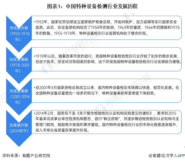从20世纪50年代至今,我国特种设备检测行业经历了以下四个阶段: