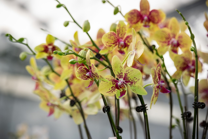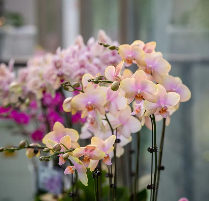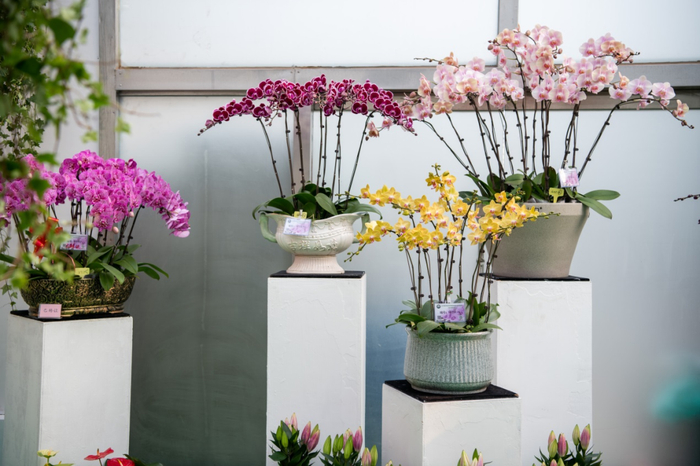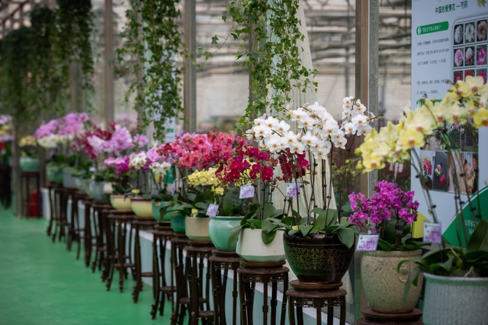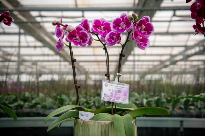 据介绍,现场展示的102个蝴蝶兰新品种中,有主打节日送礼、展览布景和租摆的大花型,也有适合单株包装、电商销售的迷你型。新奇特品种也很多,如一朵花里多种颜色的复色型、年轻消费者喜欢的大唇瓣型、香味型,花期更长的蜡质花瓣型等。