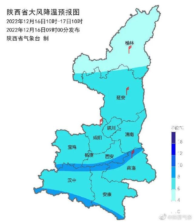 陕西省气象台2022年12月16日10时00分继续发布寒潮蓝色预警: