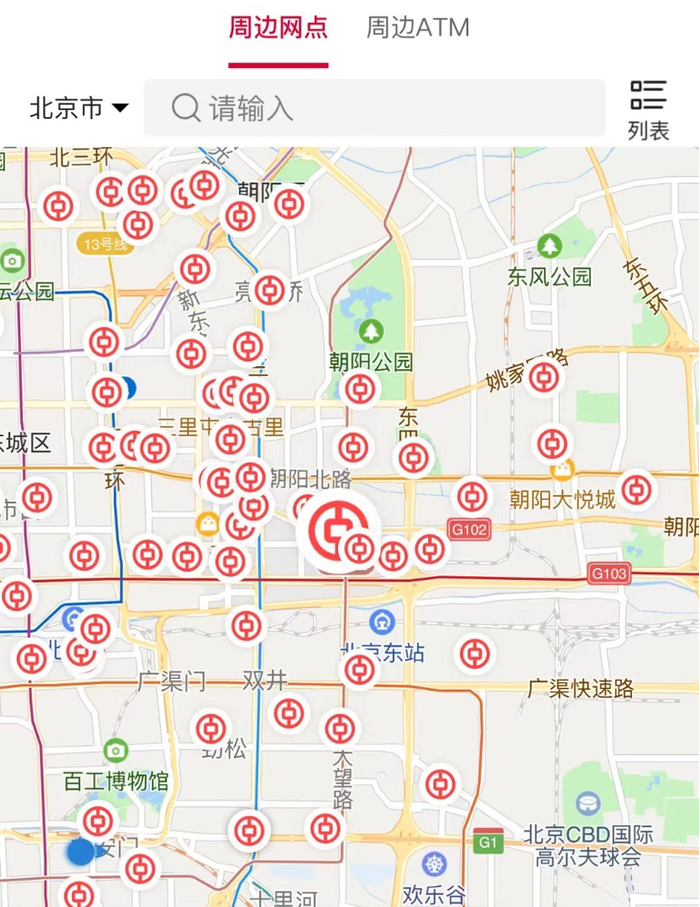 建设银行网点信息查询方式也类似。