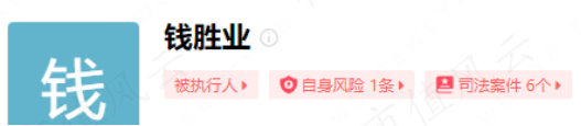 钱胜业本人也是被执行人,被执行总金额6253.29万元,并涉及6个司法案件,身份均为被告或者被执行人。