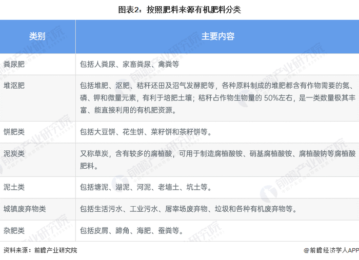 2、有机肥料主要分类及效用分析