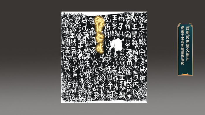 “中国”一词最早的文字记载,见于何尊——“宅兹中国”。何尊铭文主要记载了周成王对宗族小子何的告诫,其内容涉及了周王朝建立初期的多项重要历史事件。何以中国?何尊之中就凝结着最早的“中国”。