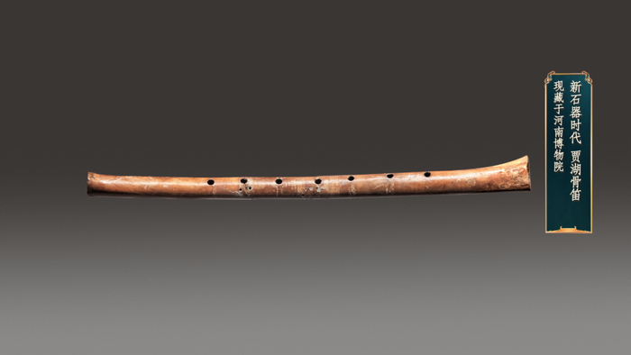 贾湖骨笛则是来自“八千年前的笛声”。它的出现将中国音乐史的起源一举前推至八千年前,刷新了中国乃至世界的音乐史。它采用鹤骨制成,可演奏七声音阶。古朴而明亮的贾湖笛声真实再现了当年古人听到的这种声音,显得尤为珍贵。