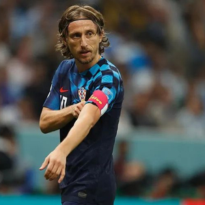 2022年12月13日,卡塔尔,2022卡塔尔世界杯半决赛上的克罗地亚队队长莫德里奇。