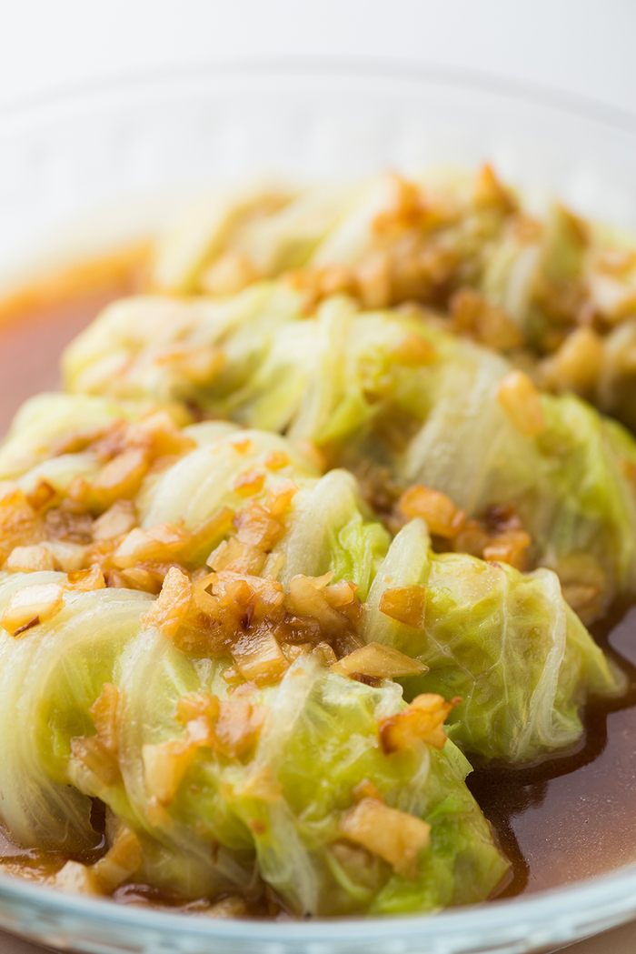 更适应南方口味的做法,是把白菜做成皮儿,最大限度发挥它的柔嫩。“白菜卷肉”,本是一道川菜,现在已经传遍了大江南北。蒸熟的白菜卷,皮儿吹弹可破,馅料已经扎扎实实地团成了小丸子,一口咬下去,筋道弹牙,还带一点儿回甜。南方朋友又对它各有改良,加马蹄、加豆腐,不一样的馅里是不一样温柔。