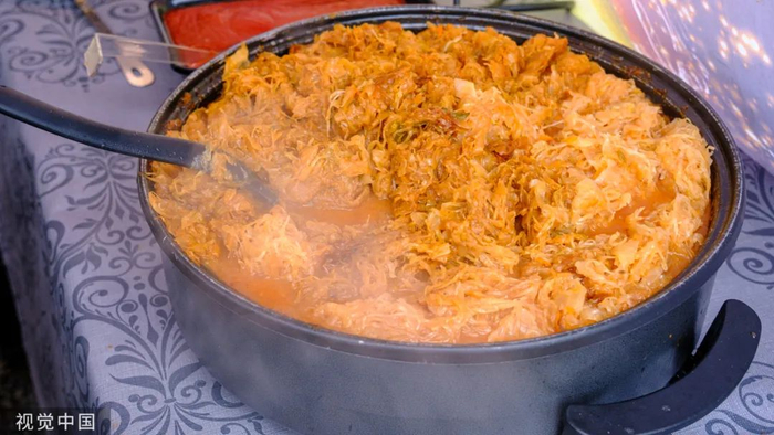 江南炖汤也有自己的风情。入冬的日子里,一锅白菜排骨年糕汤的温暖无人能够拒绝。烂糊白菜更不能错过。先炸点鸡蛋酥,面粉炒一炒再熬汤,把白菜、蛋酥、肉丝都放进汤中煮到软烂成糊。一勺勺吃,入口即化,绵软稠润,好像有热气在顺着经络蔓延,浑身都浸没在软绵绵的熨帖之中。