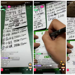 澎湃新闻记者注意到,每次上新原石时,主播“刀总”都会和一名出货商进行一番“讨价还价”。“压价”成功后,他就会在两张白纸上,写下“满绿”预期成交价格、“发车”(意即人数够了,切原石)人数,老客和新客下注金额及对应可赚取金额等内容。他称,每批原石都只有5个名额,老客2人、新客3人,按留言顺序“上车”(意即下注)。他称,当开出“满绿”后,他会收取10%的手续费,“我希望你们人人都能切出满绿”。