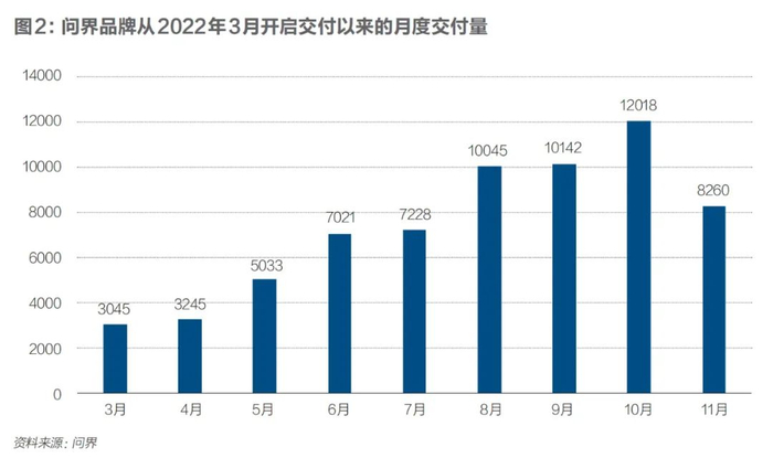 问界的销量崛起,业内普遍认为,与其进驻了华为门店密不可分,华为强大的渠道能力促进了问界的品牌推广和销量转化。