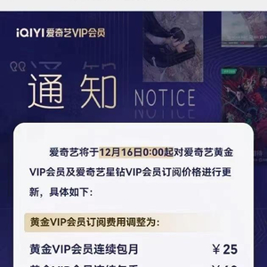 ↑爱奇艺会员涨价通知