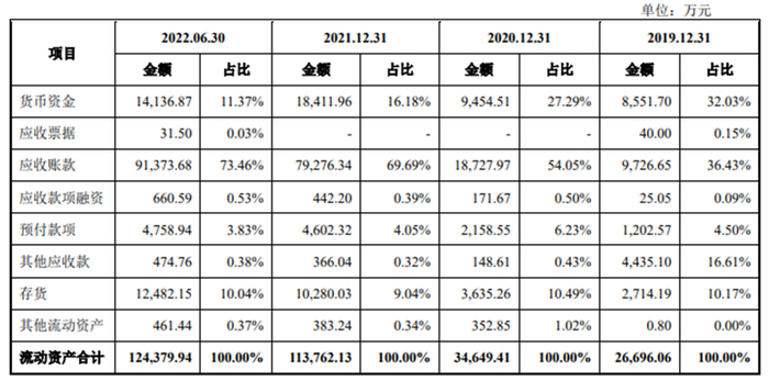 2019年至2022年1-6月各期末,电子网的应收账款分别为9,726.65万元、18,727.97万元、79,276.34万元和91,373.68万元;应收票据及应收款项融资合计账面价值分别为65.05万元、171.67万元、442.20万元和692.09万元。经计算,公司应收款合计9,791.70万元、18,899.64万元、79,718.54万元和92,065.77万元。