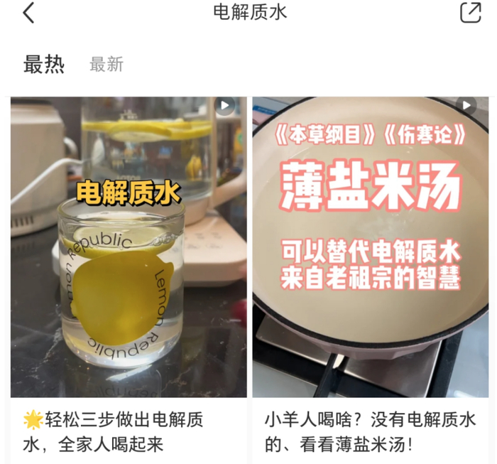 各大短视频平台上充斥的五花八门的自制电解质水教程